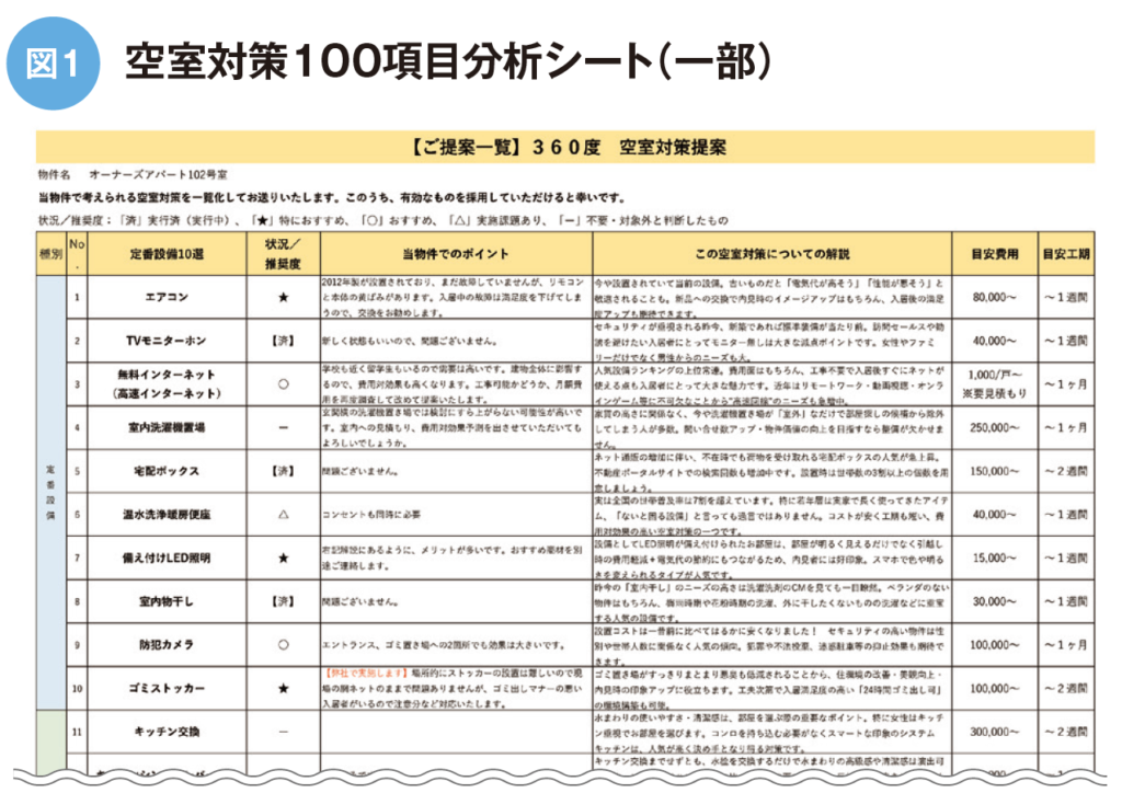 図1:空室対策100項目分析シート(一部)